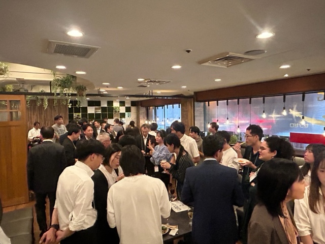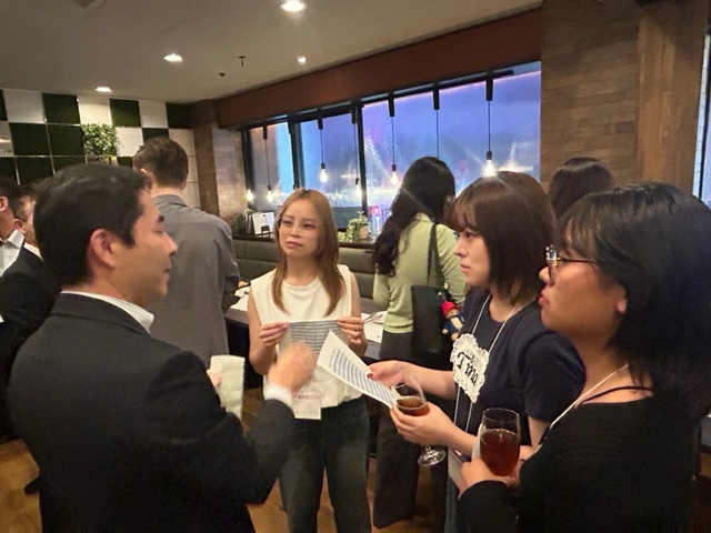 また、総会終了後は、「Zen Zero名駅店」にて交流会を開催しました。今年は立食形式で、企業と留学生が4つのグループに分かれて自由に交流できるスタイルを取り入れました。食事やドリンクを片手に、グループ間を気軽に行き来しながらお話しいただける雰囲気が好評で、カジュアルかつ活発な時間となりました。