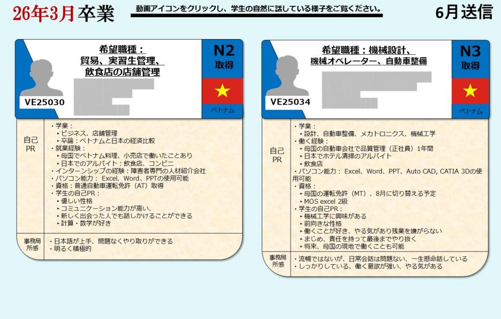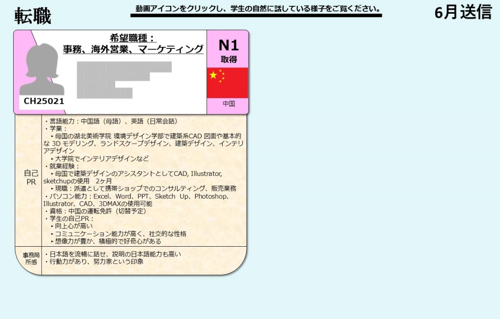 今月の求職者は以下の通りです。