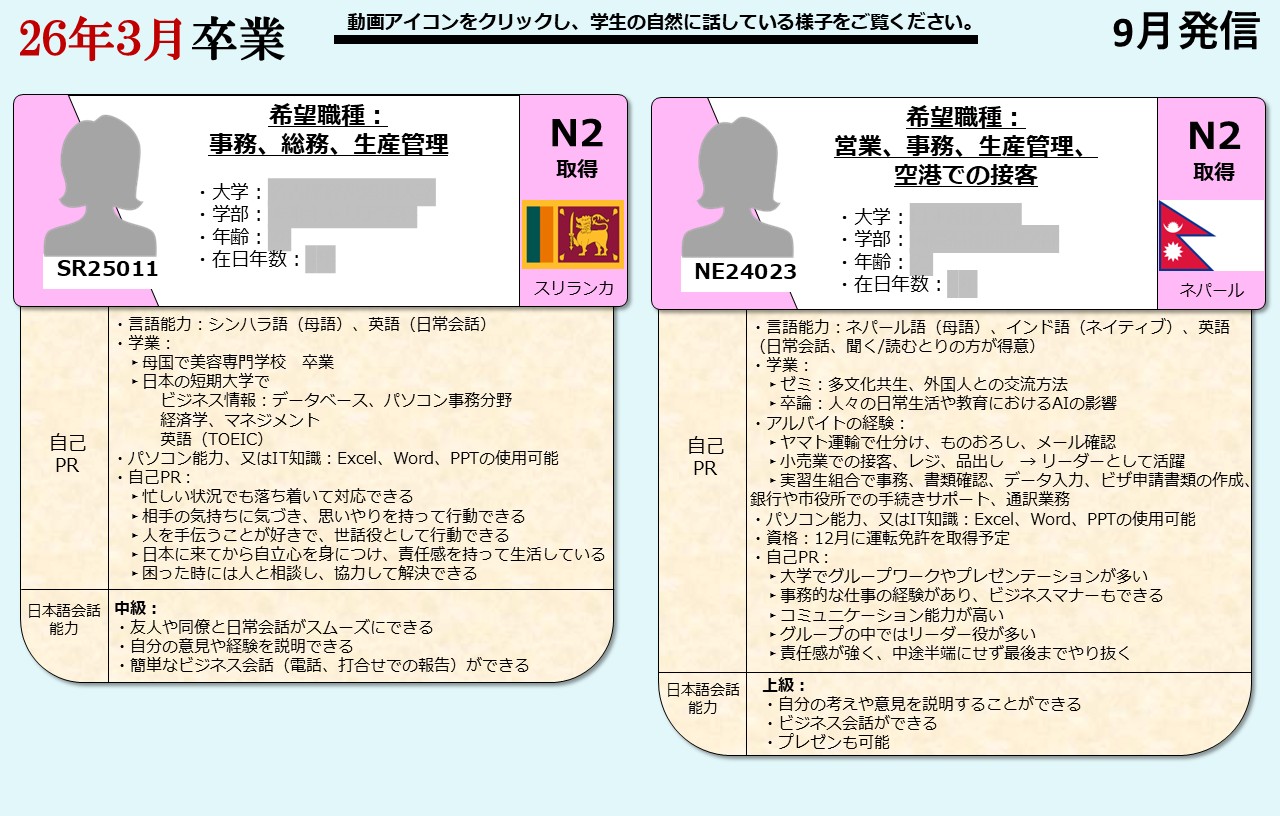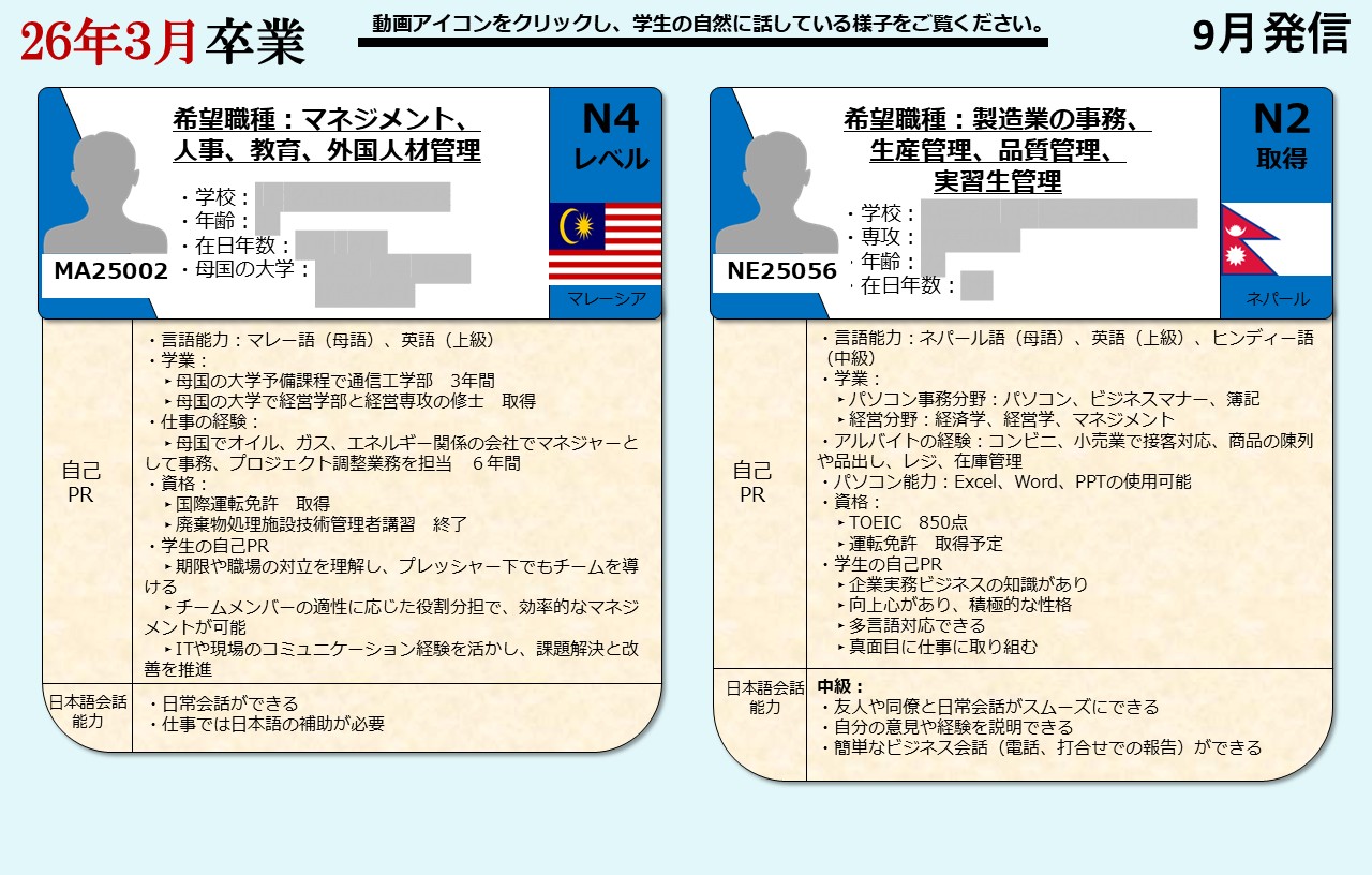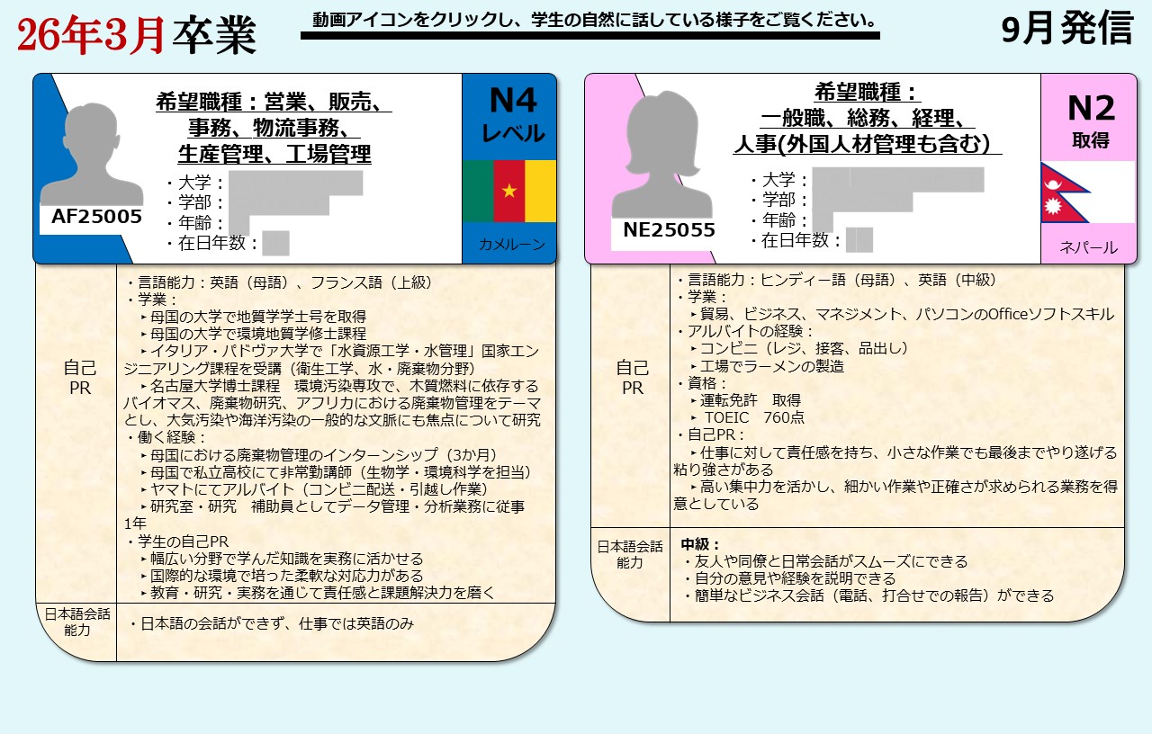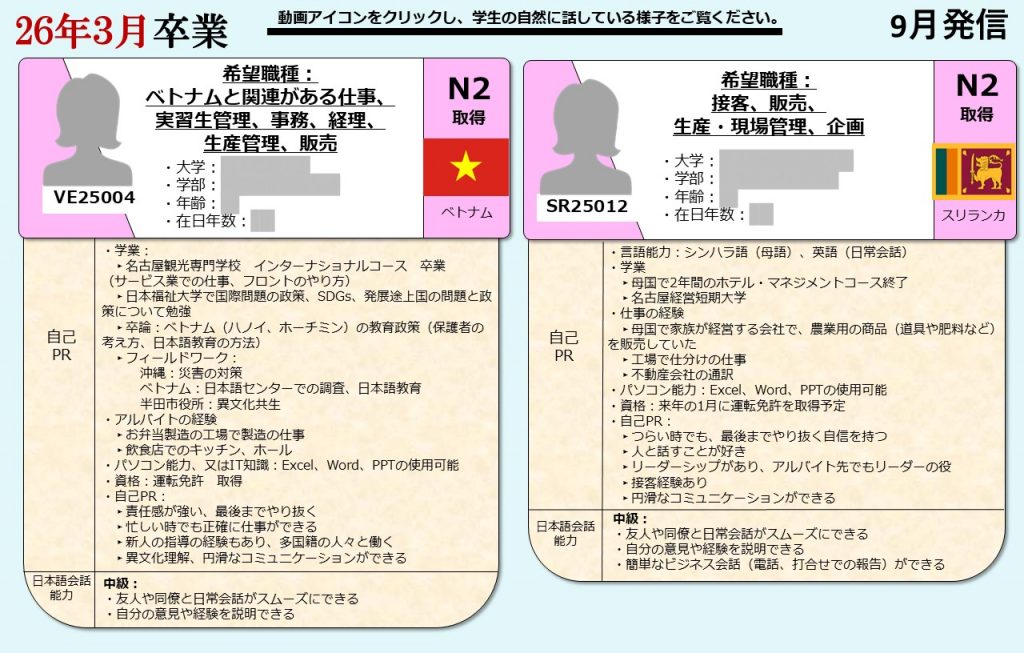 グローバル愛知は、愛知県の留学生を中心に全国の留学生に向け、就職支援を提供しております。毎月留学生向けに就活オンライン相談会を開催し、就職に困っている留学生たちにアドバイスをおこなっています。そして相談会に参加した留学生の情報は、会員企業に向けて求職者情報として定期的に発信しています。