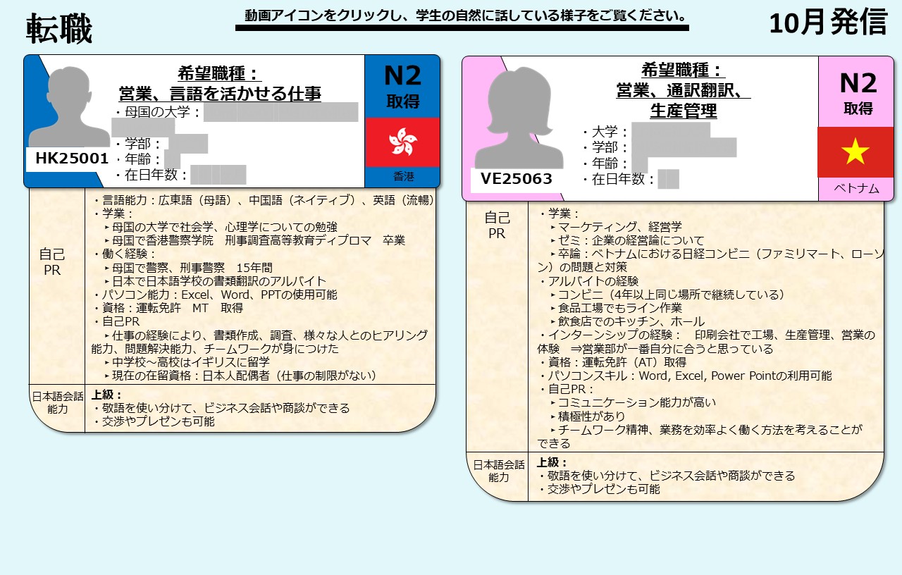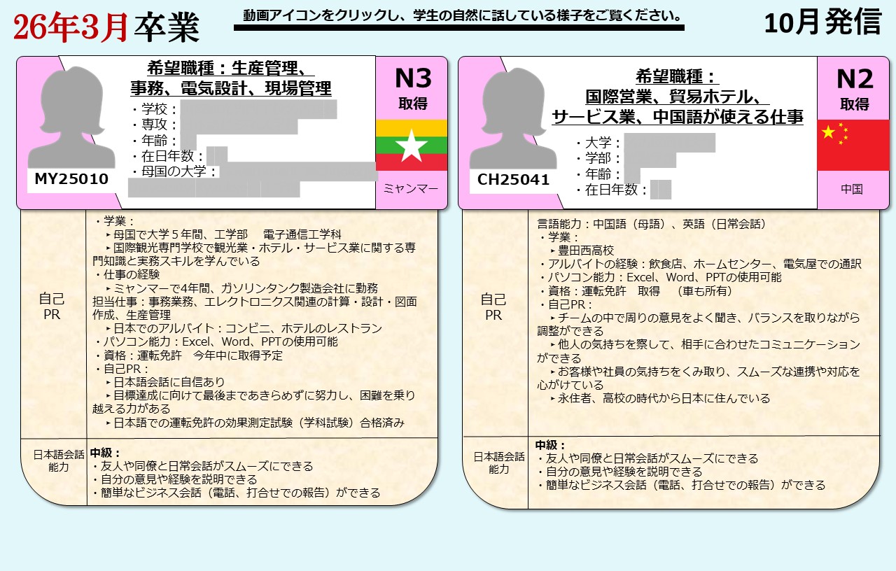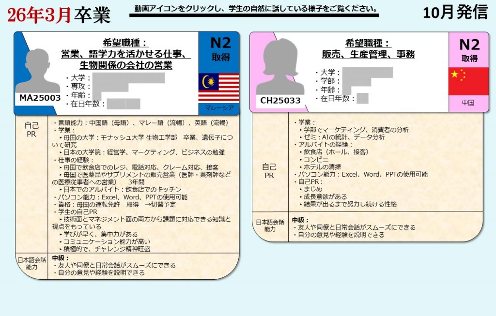 グローバル愛知は、愛知県の留学生を中心に全国の留学生に向け、就職支援を提供しております。毎月留学生向けに就活オンライン相談会を開催し、就職に困っている留学生たちにアドバイスをおこなっています。そして相談会に参加した留学生の情報は、会員企業に向けて求職者情報として定期的に発信しています。