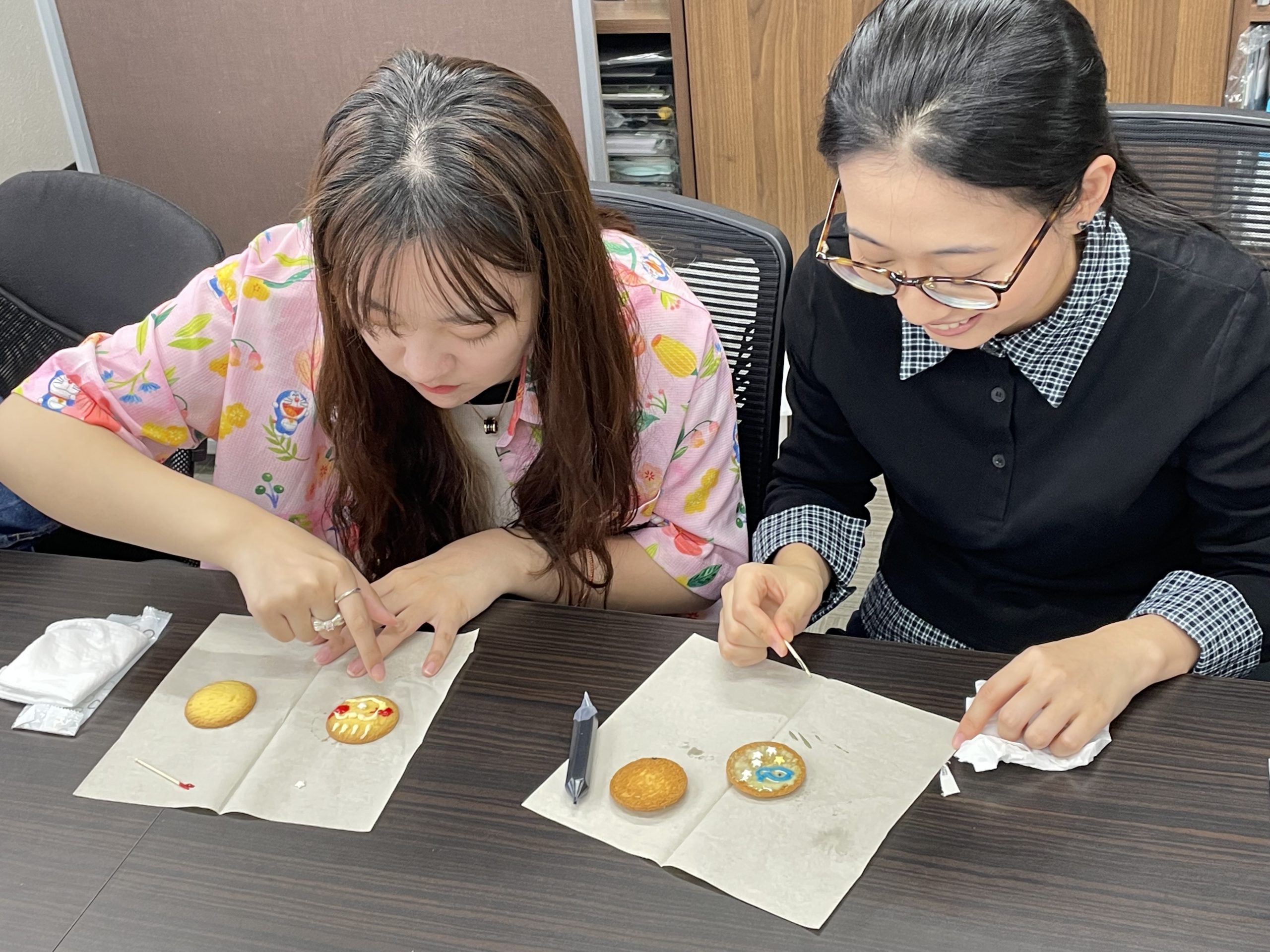 自分で好きなデザインのクッキーを作りながら、みんなとおしゃべりできて、とても楽しかったです。一生懸命に可愛くてきれいなクッキーを作っていました。