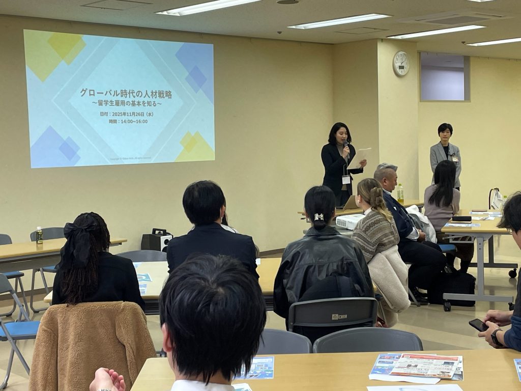 2025年11月26日(水)グローバル愛知は豊田市と連携して、外国人材の就労支援イベントを開催しました。企業の担当者と世界各国からの外国人留学生が参加しました。