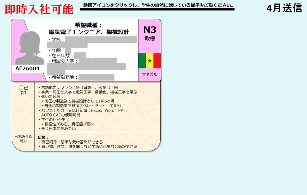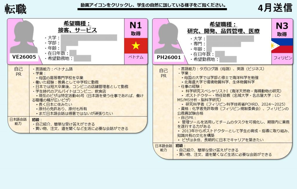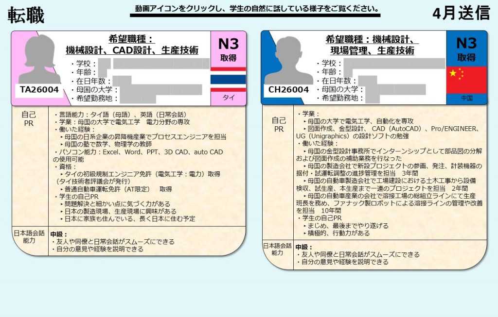 今月の求職者は以下の通りです。